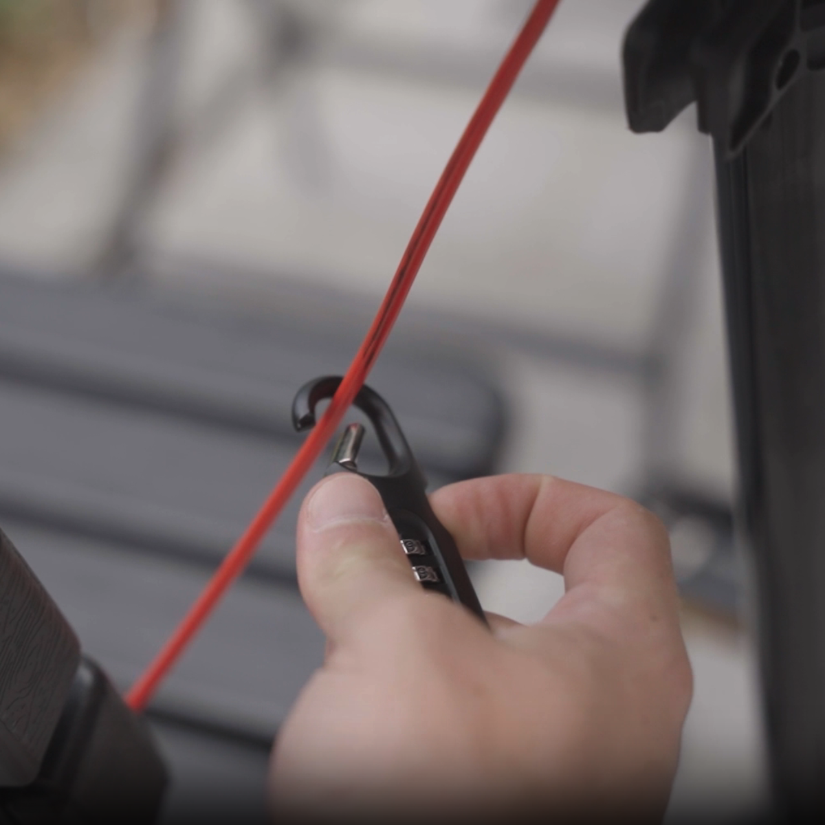 Brompton Cafe Lock is a low-security lock integrated into an extended seatpost, perfect for quick stops and deterring opportunistic theft. Features a bright red cable for visibility and a combination lock for keyless convenience. Compatible with all Brompton bikes and saddles.