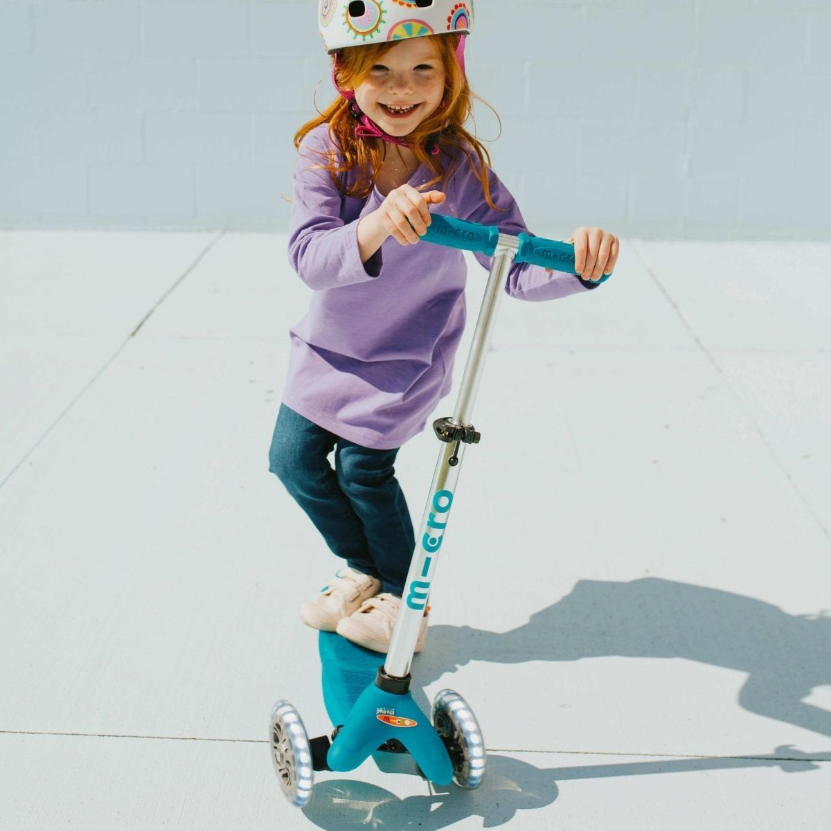 Built with Micro’s Swiss-engineered quality, it features a sturdy, non-slip deck, adjustable handlebar for growing riders, and motion-powered LED front wheels that light up with every scoot — no batteries or switches needed. The Mini Classic Plus is built to handle everyday adventures while adding a little sparkle to every ride.