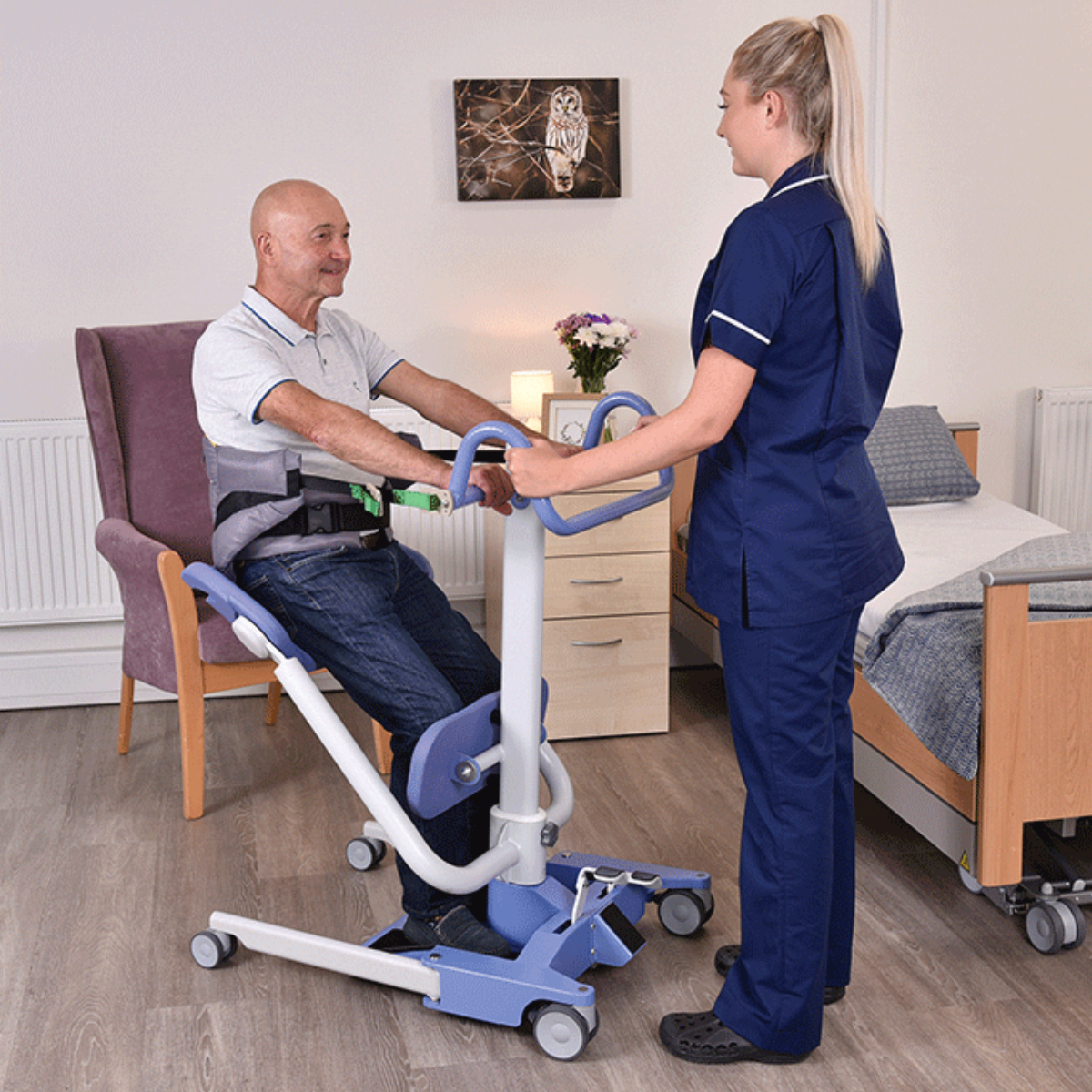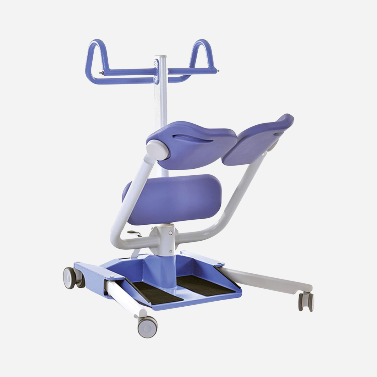The Oxford Up can be disassembled quickly for storage and transport, making it suitable for both home and professional care settings. For enhanced support, it can be paired with the Oxford Deluxe Standing Sling with Clips, offering additional seated assistance during transfers.