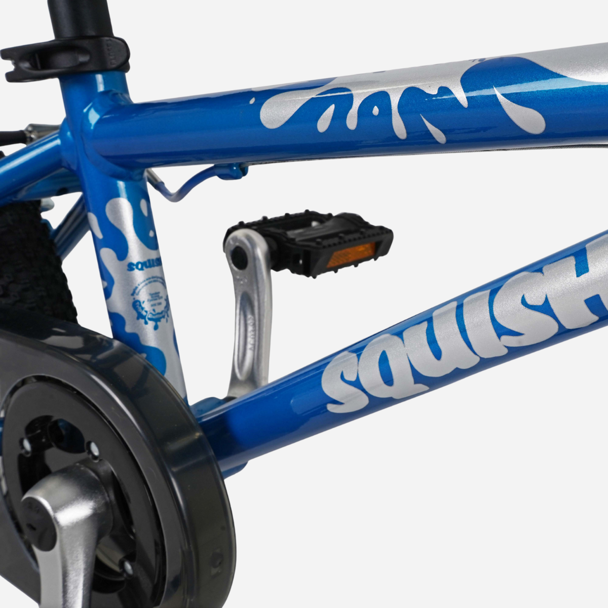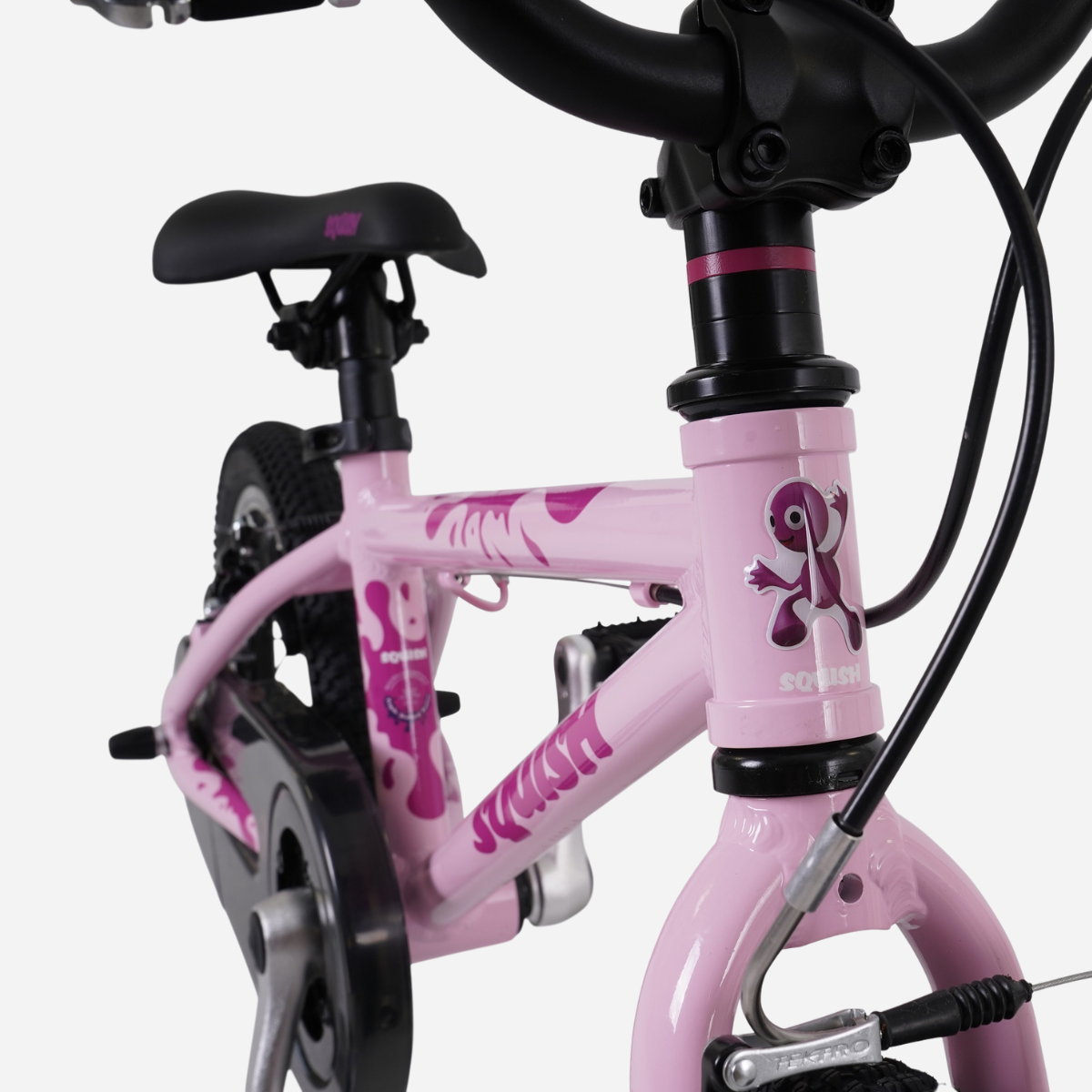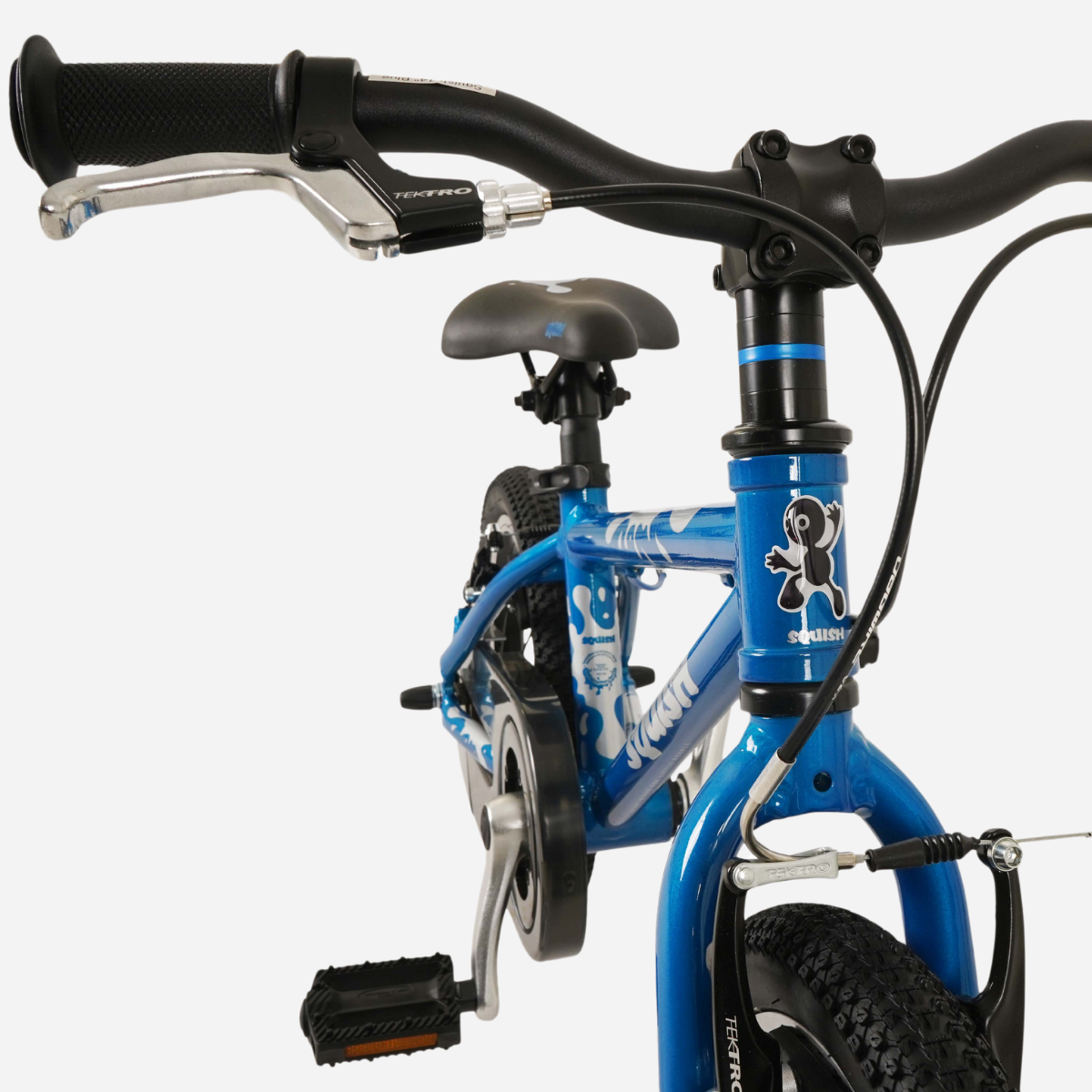 The Squish 14 features shortened crank arms, a stubby stem, short reach brake levers, and a funky Selle Royal/Squish co-branded saddle. Not only does it look cool, but it’s also perfectly proportioned for its intended rider.