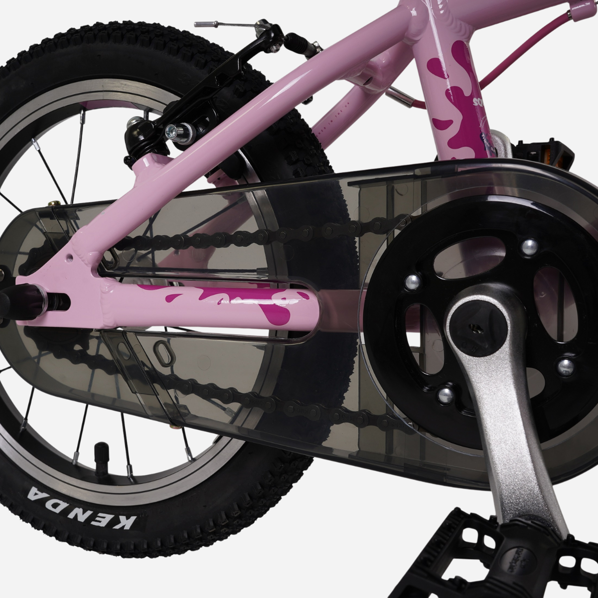 We've enhanced the rims with CNC sidewalls to boost braking performance and equipped the bike with a fully enclosed chainguard to protect clothes and curious little fingers. Plus, it weighs just 5.83kg, making it easy for young riders to handle.