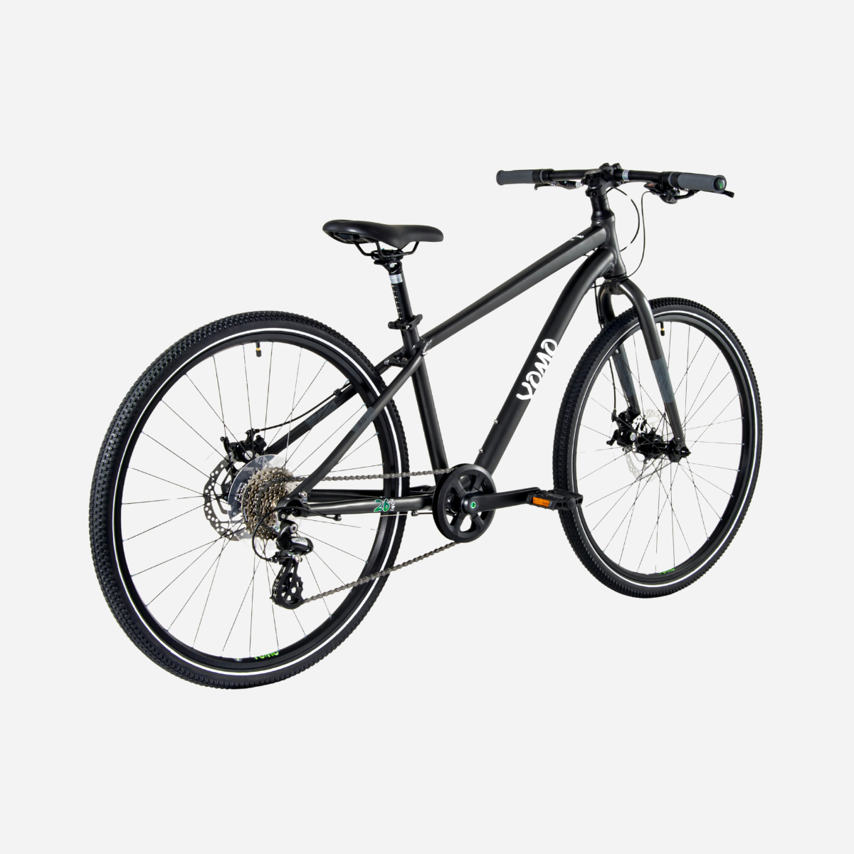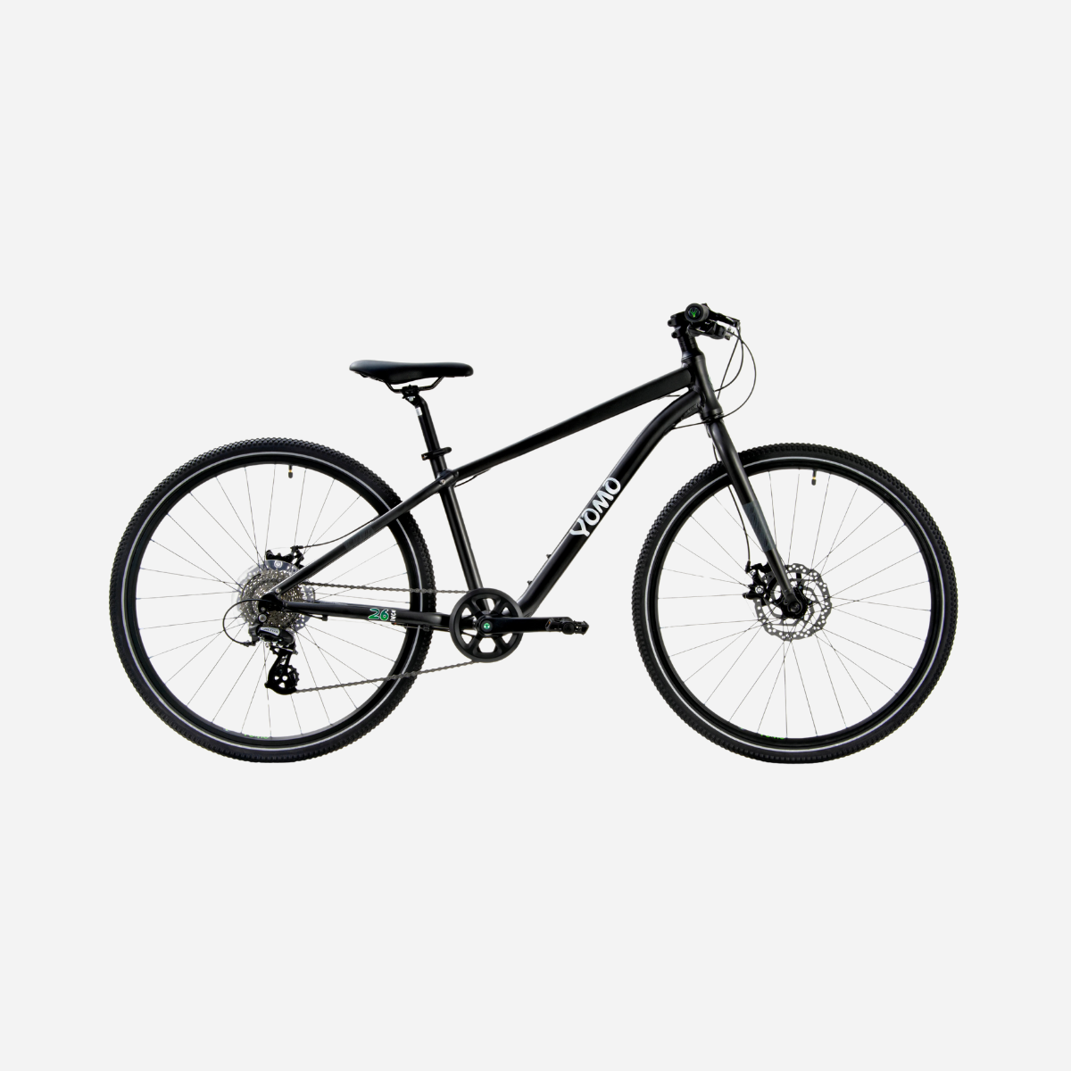 The YOMO 26 is the ultimate youth bike for riders aged 10-14 years, featuring a lightweight alloy frame with 26" wheels that deliver true adult-level performance and capability. With advanced gearing systems, professional-grade components, and versatile design, it's built to handle serious adventures and daily riding as young cyclists transition toward full-sized bikes with complete confidence.